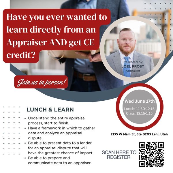 Come have lunch with us, get CE credit and learn about the appraisal process.