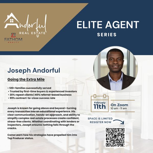 Our first Elite Agent Series of 2026 will be with Joseph Andorful. Scan the QR Code on the flyer or Click Here to register